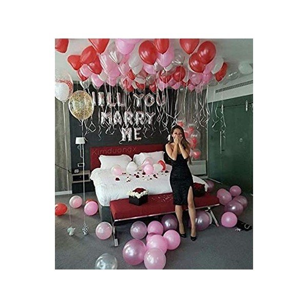 Marry Me balloon on wall, 30 pcs Hilliam balloon, 20 pcs balloon on floor, 30 stk roses in box or flower bouquet